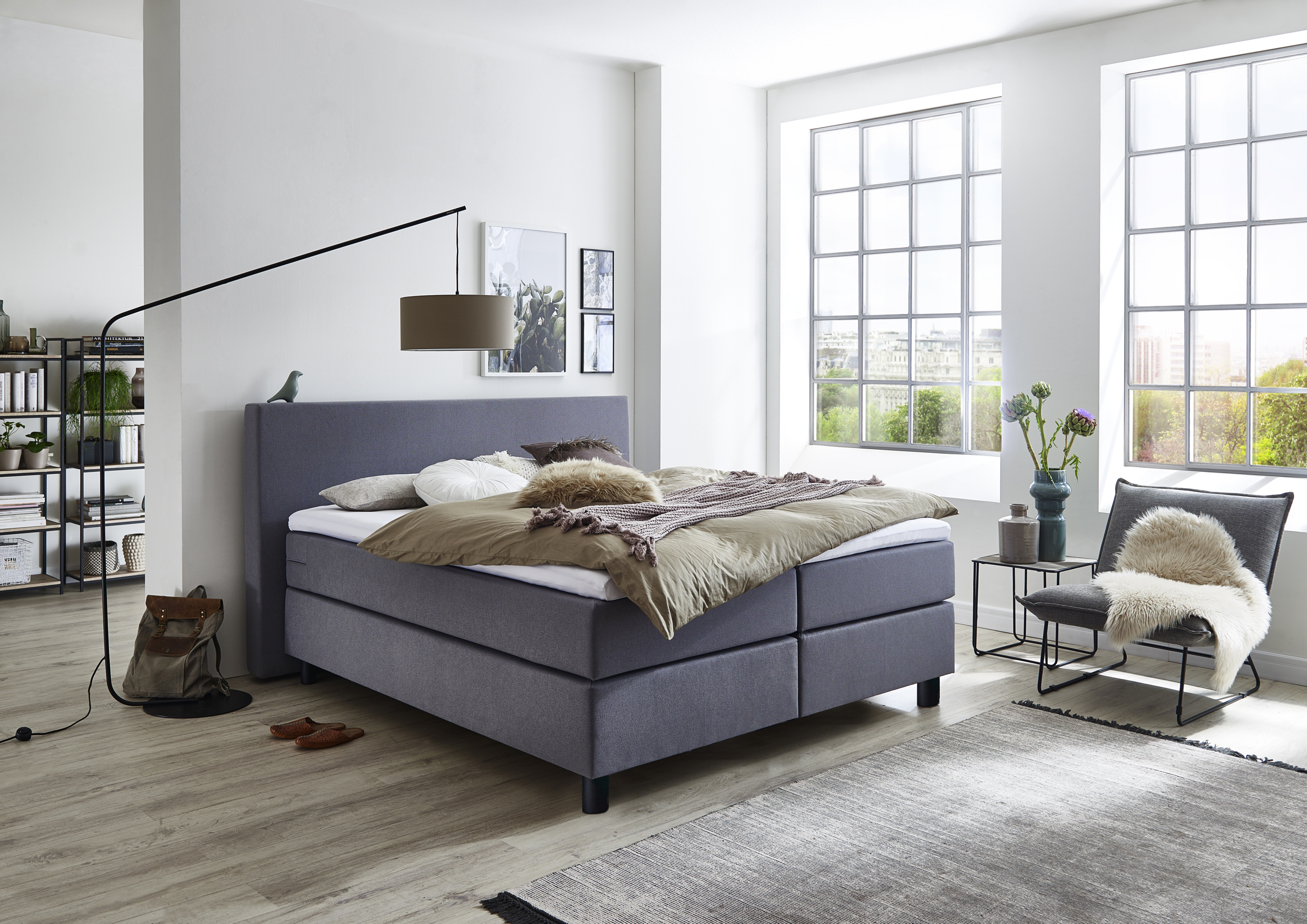 Het royale hoofdbord (ca. 113 cm hoog) geeft de Boxspring Portland een luxueuze uitstraling. Met een totale lighoogte van circa 66 cm stap je bovendien moeiteloos in en uit bed.