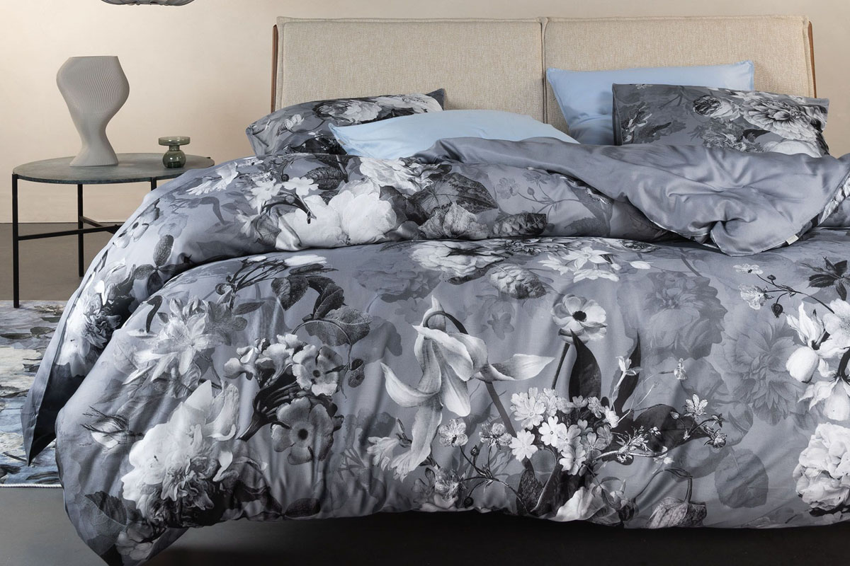 Het ESSENZA Floor dekbedovertrek – Global Grey combineert een subtiele ton-sur-ton bloemenprint met de luxe van 100% katoensatijn. Ademend, fluweelzacht en geschikt voor elk seizoen.