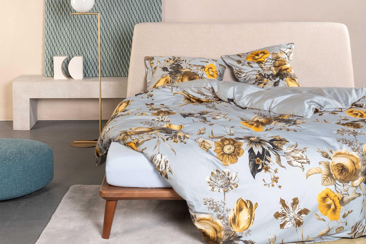 Het ESSENZA Florean dekbedovertrek in Grey combineert lentefrisheid met ingetogen elegantie. Het verfijnde two-tone bloemendessin is samengesteld uit bloemen afkomstig uit zes verschillende kunstwerken uit het Rijksmuseum-archief. Hierdoor ontstaat een uniek ontwerp waarin kunst en modern slaaptextiel samenkomen.