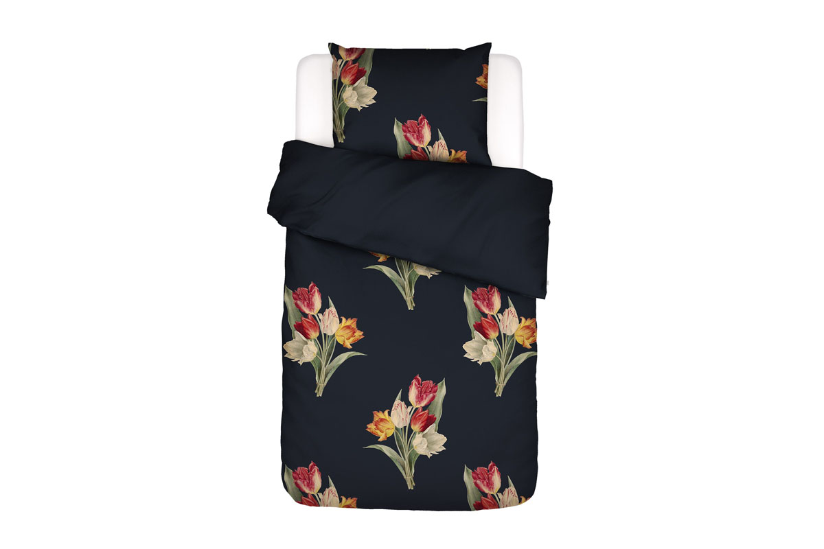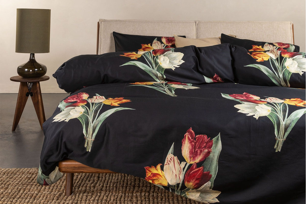 Het ESSENZA Tosca Anthracite dekbedovertrek haalt de schoonheid van klassieke kunst naar jouw slaapkamer. Het ontwerp is geïnspireerd op het 19e-eeuwse schilderij Bos tulpen van Jan Jacob Goteling Vinnis, afkomstig uit het archief van het Rijksmuseum. Grote, luchtig geplaatste tulpen sieren het overtrek in een compositie die ruimte ademt. De royale tussenruimtes laten iedere bloem tot haar recht komen, terwijl de subtiele beweging in het dessin een bijna levendig, dansend effect creëert. Dit maakt Tosca een harmonieuze mix van kunst, elegantie en rust in je interieur.
