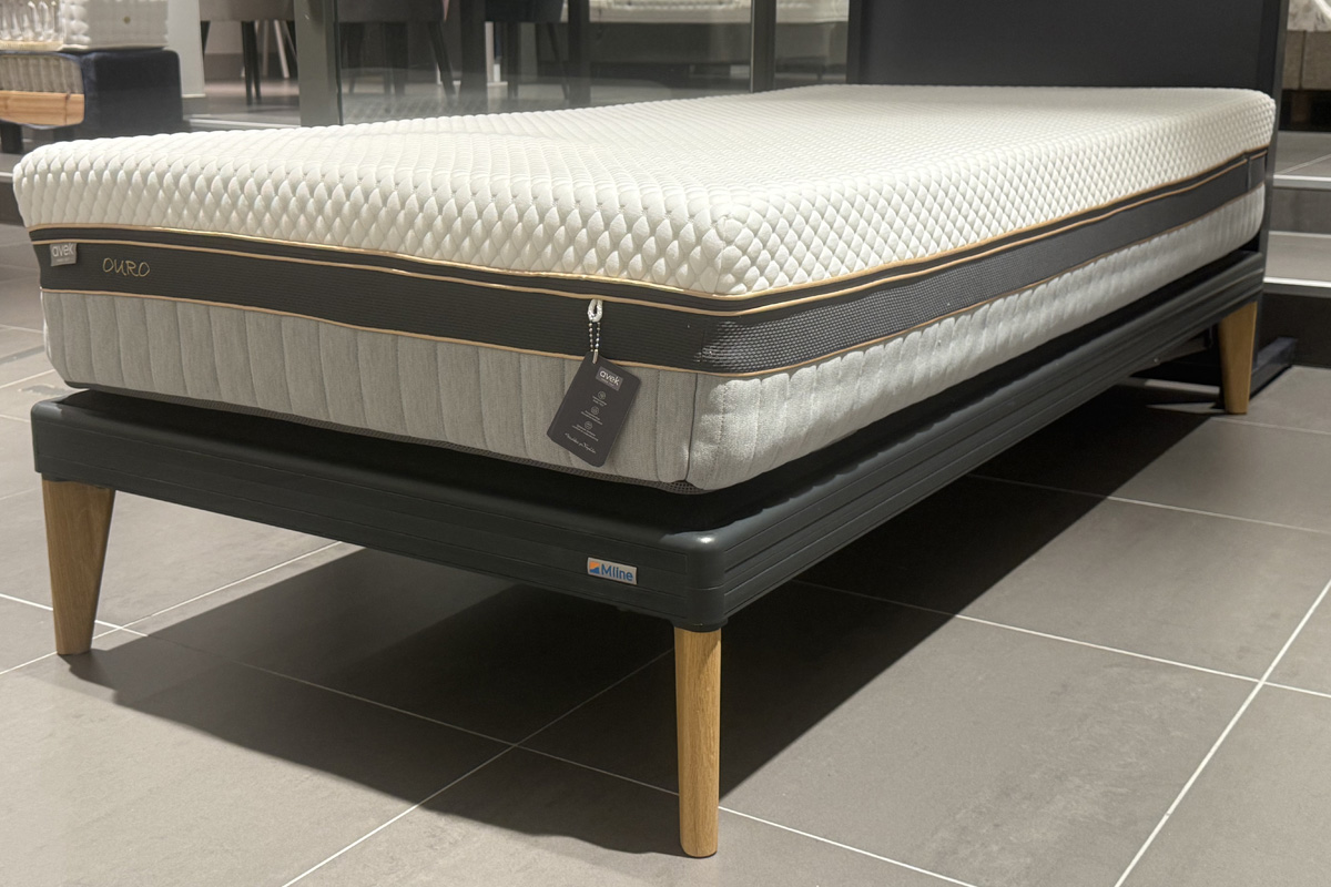 Let op; dit is een 1-persoons elektrisch verstelbaar M Line Multi Motion boxspring showroommodel 90×200. inclusief het Avek Ouro X7 matras standaard.