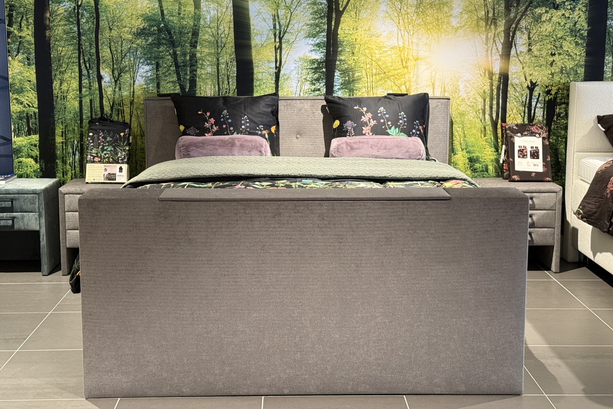 Voetbord met geïntegreerde TV-lift – strak weggewerkt en ideaal voor ontspannen tv-kijken vanuit bed