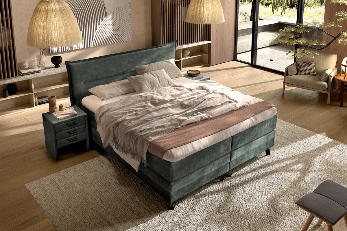 De Norma Timeless Verona boxspring combineert stijlvol design met hoog slaapcomfort. Dankzij pocketvering in zowel matras als onderstel geniet je van optimale ondersteuning en ontspanning. Volledig samen te stellen met diverse stoffen, kleuren en poten voor een perfecte match met jouw slaapkamer.