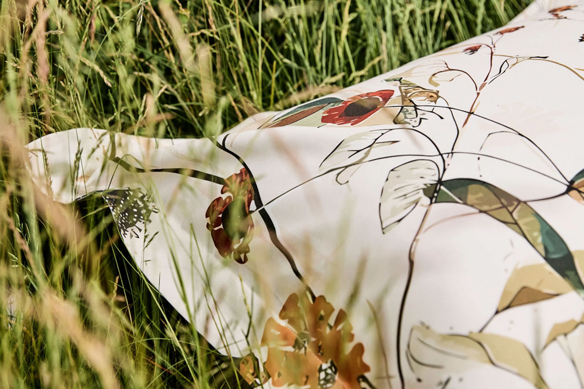 Voorzijde met subtiele bloemenprint, achterzijde effen